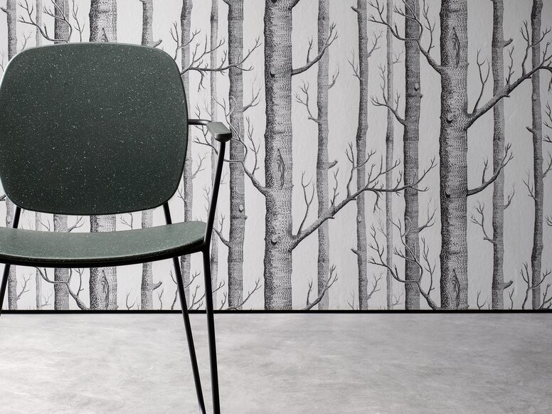 Durch den Materialmix aus rezykliertem Polypropylen und rezykliertem Polyamid, wirken die leicht melierten Oberflächen mit ihrer jeweils einzigartigen Musterung und durchscheinenden Farbtupfern lebendig und individuell. Dabei verringert die Verwendung von rezykliertem Material nicht nur den Kunststoffabfall, sondern macht jede Sitzfläche und jede Armlehne zu einem Unikat.