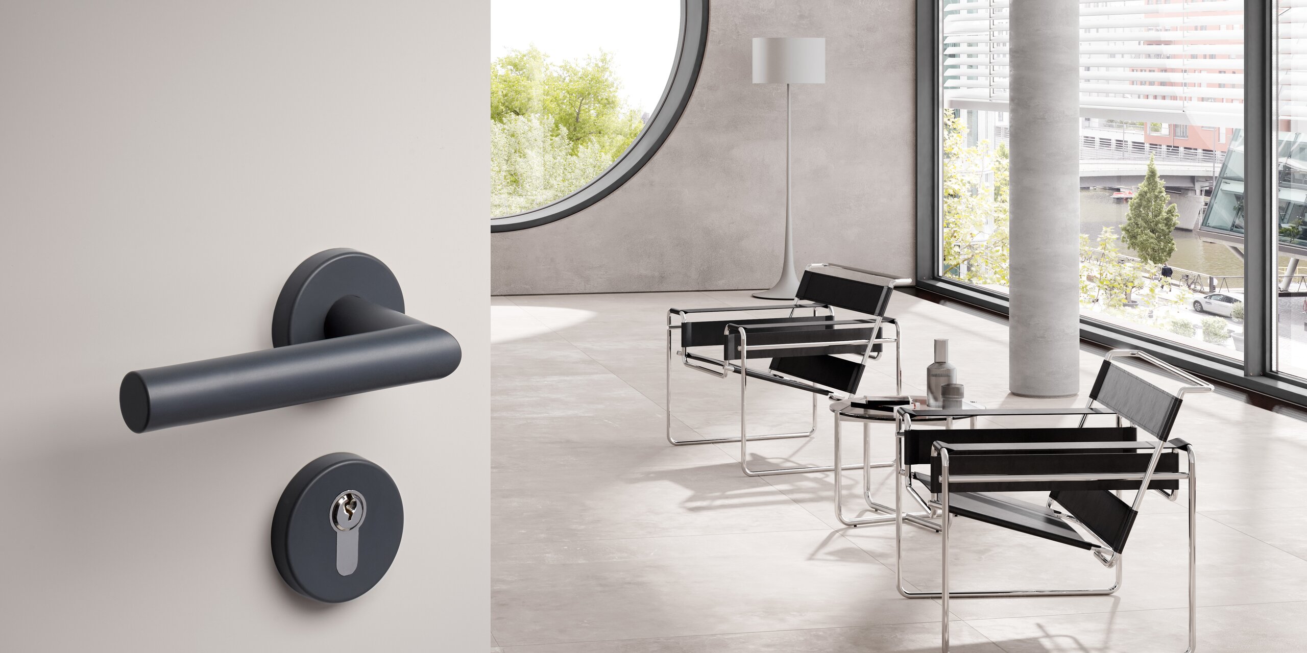 Materialoptionen eröffnen Spielraum für individuelles Design: Erhältlich sind die Türdrücker in Edelstahl und Polyamid, wahlweise in der Edition matt oder mit Pulverbeschichtung.