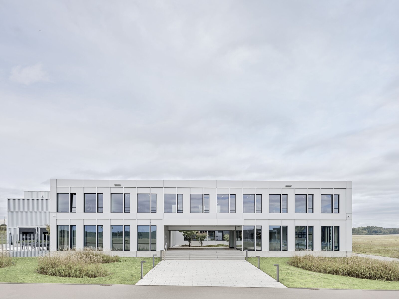 Auch in funktional geprägten Industriegebieten entstehen immer wieder Gebäude, die durch ihre architektonische Qualität hervorstechen. Am nördlichen Ortsrand der Gemeinde Dunningen fügt sich so ein gelungenes Industriegebäude ruhig und ausdrucksstark zwischen Bundesstraße und offene Landschaft ein. Das Architekturbüro RÖING GENANNT NÖLKE Architekten PartGmbB hat das Gebäude entworfen. Teil des von einer einzigartigen gestalterischen Konsequenz geprägten Konzepts ist die Komplettausstattung mit Produkten von HEWI.