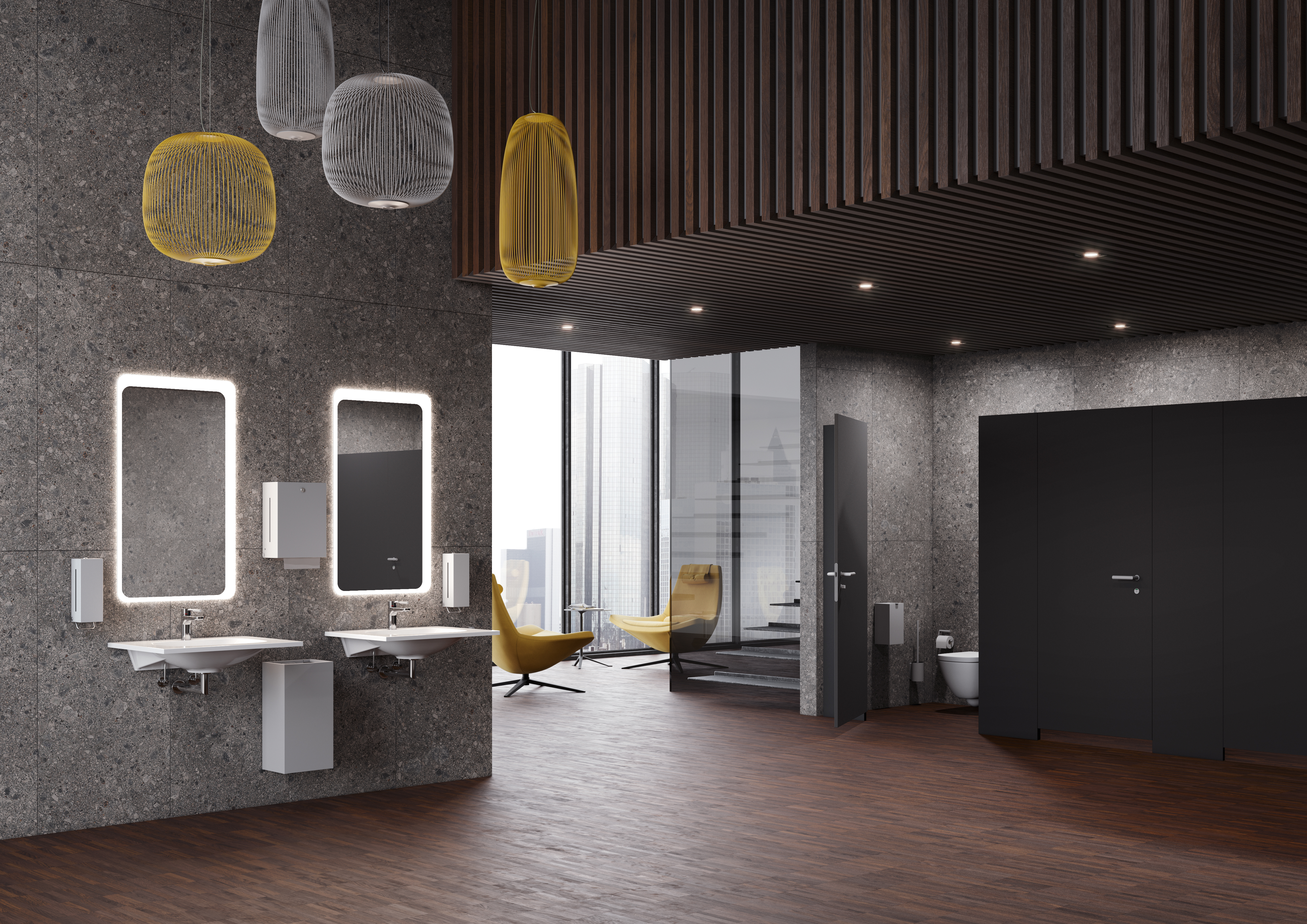 Ab sofort komplementiert ein neues Spendersortiment das erfolgreiche Sanitärsystem 900. Zur Auswahl stehen Modelle mit Pulverbeschichtung in Schwarz, Grautönen und Weiß sowie Edelstahlvarianten. Die Spender zeichnen sich durch ihre Robustheit aus und eignen sich perfekt für den Einsatz in stark frequentierten Sanitärräumen. Eine Schloss-Verriegelung bietet Schutz gegen Missbrauch. Ein Großteil der Spender steht neben manuell bedienbaren Varianten auch in einer Sensoric-Ausführung zur Verfügung. Von Seifen- und Desinfektionsmittelspender über Papierhandtuchspender und Abfallbehältern bis hin zu Hygienekombinationen in verschiedenen Größen bietet HEWI ein durchgängiges, funktionales Sortiment, das sich zudem durch höchste Designansprüche auszeichnet.