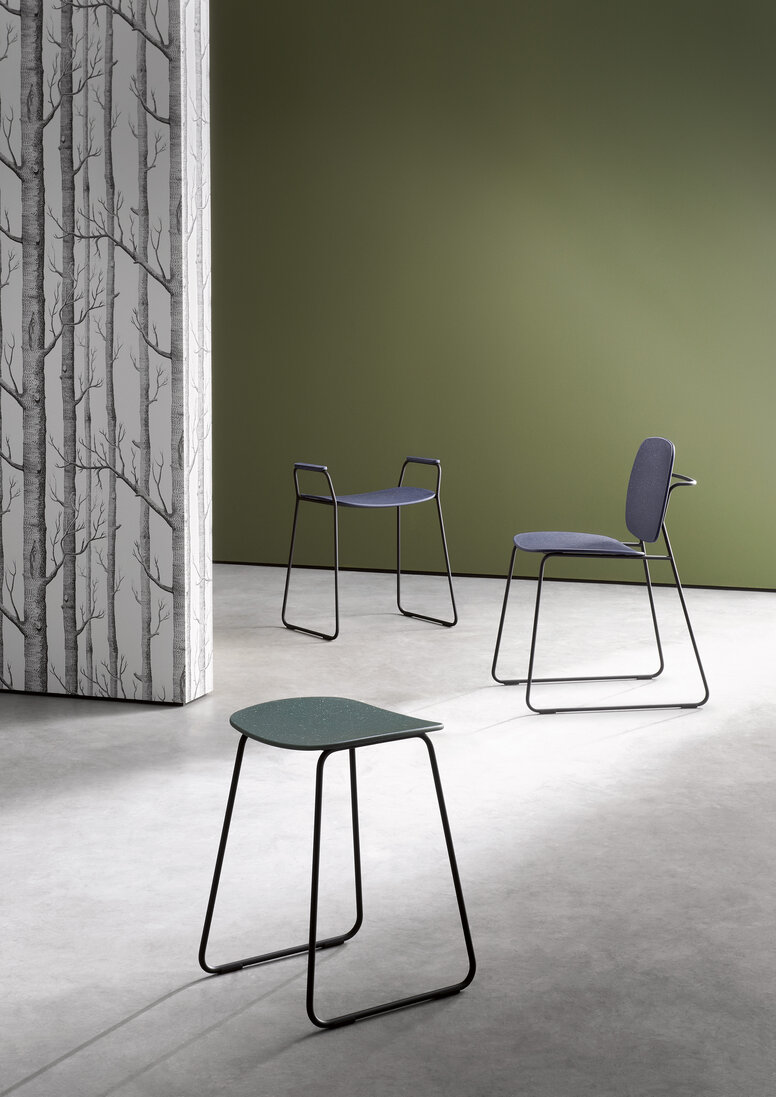 Die neue Re-Sitzfamilie von HEWI besteht aus drei Hockern und zwei Badstühlen und ist aus Post-Industrial Rezyklat gefertigt, das zum Teil von HEWI selbst stammt sowie von einem regional ansässigen Produzenten bezogen wird. In den naturnahen Farben Waldgrün und Dunkles Granitgrau bieten sie haptisch und optisch ein spannendes sowie lebendiges „Look & Feel“.