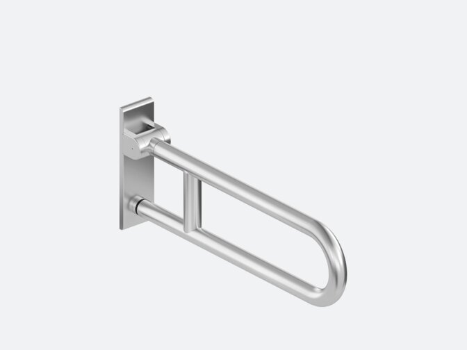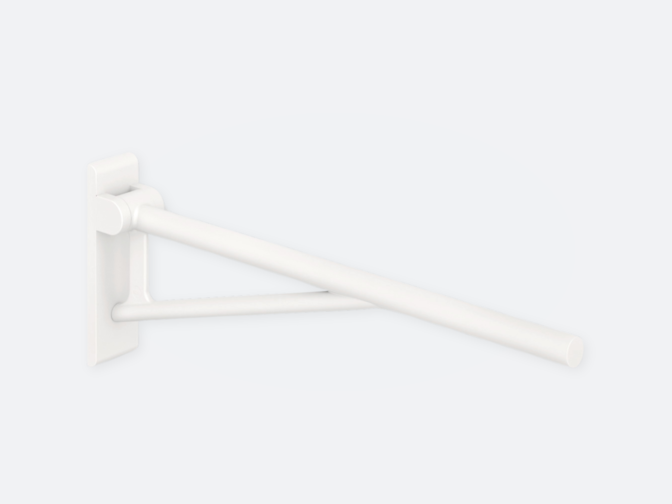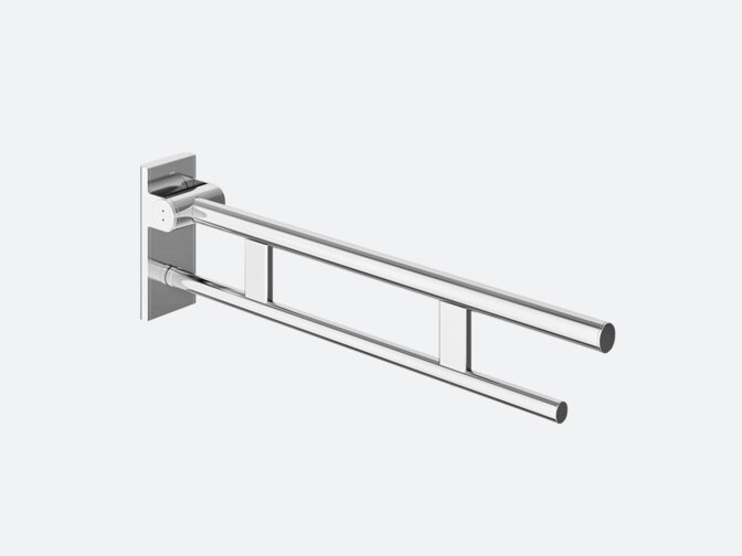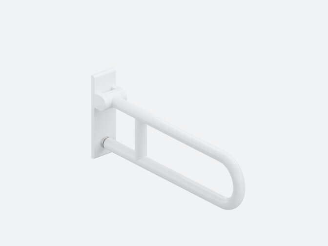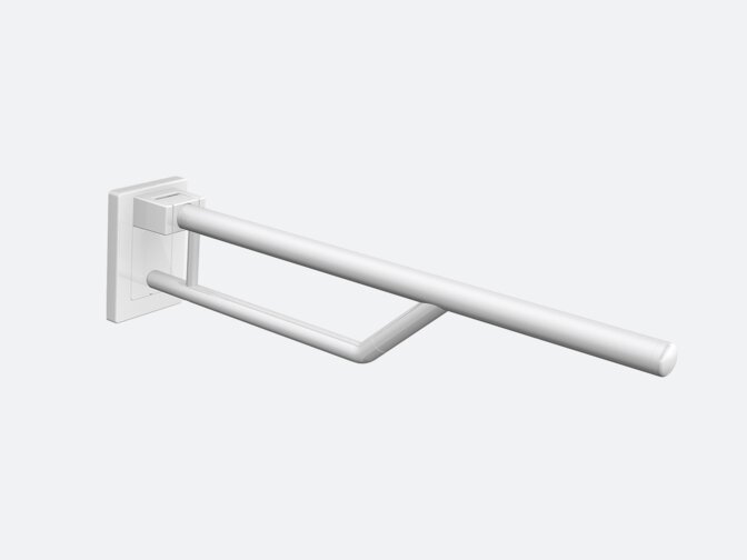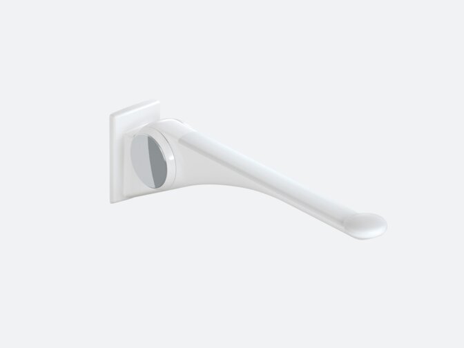 • Stützklappgriff Duo: Dieser verfügt zusätzlich über einen Unterholm in runder Ausführung, der das seitliche Eindrehen auf das WC optimal unterstützt