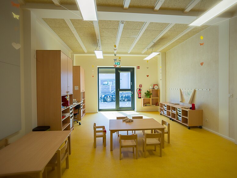 Die gesamte Anlage verfügt über viele Oberlichter, die die Kindertagesstätte mit ausreichend Tageslicht versorgen. Bei gutem Wetter können sie geöffnet werden und an dunklen Tagen halten sie den Bereich trotzdem hell genug. Die Fenster helfen Strom zu sparen, doch auch ansonsten ist die Kita ein Energiesparhaus. Sie verfügt über eine Fotovoltaikanlage auf dem Dach, die das gesamte Gebäude mit Strom, Wärme und Warmwasser versorgt. Anfallende überschüssige Energie wird verkauft und dadurch werden zusätzliche Einnahmen generiert und die laufenden Kosten minimiert.