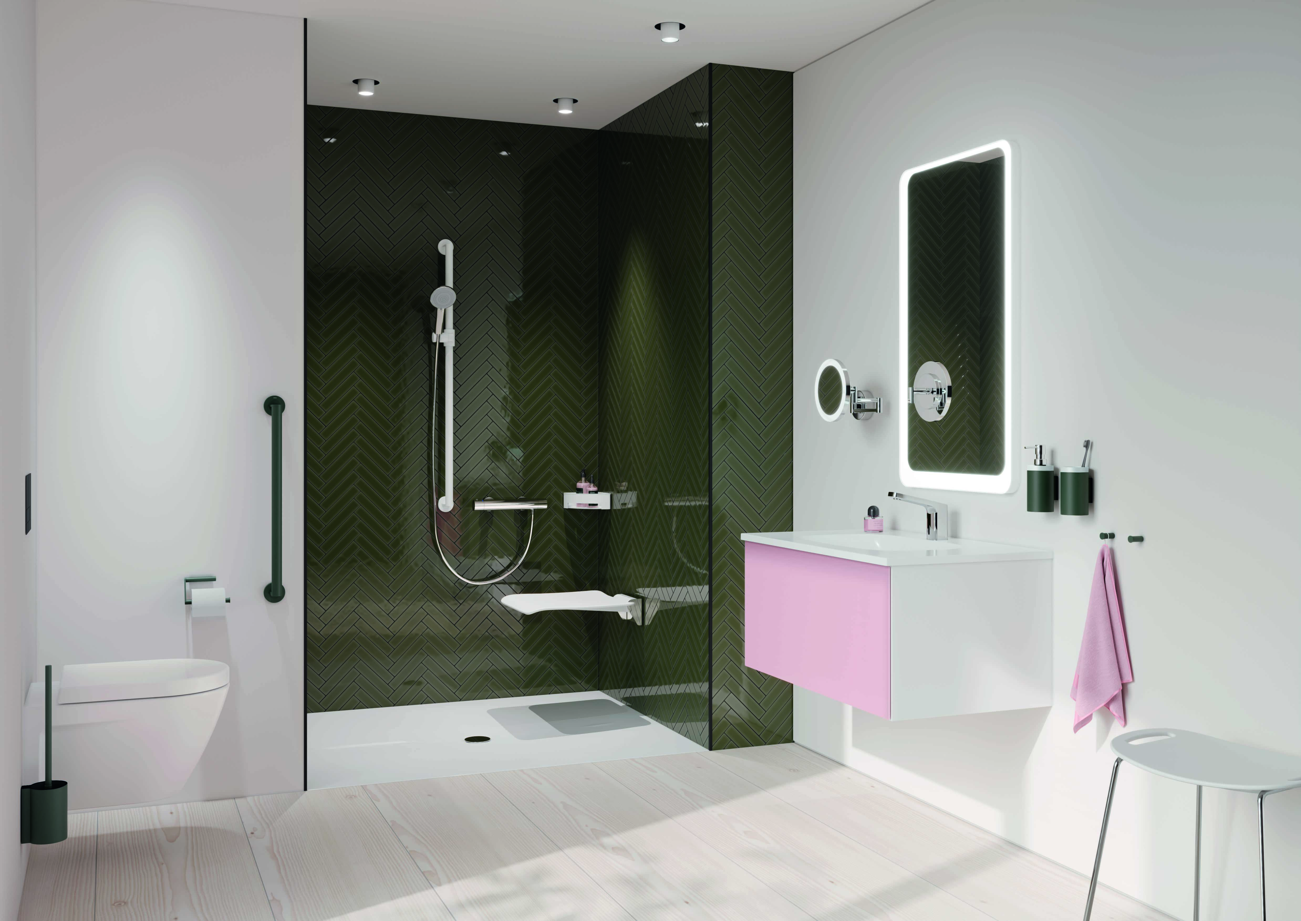 Accessible sanitary range System 900 in individual colours