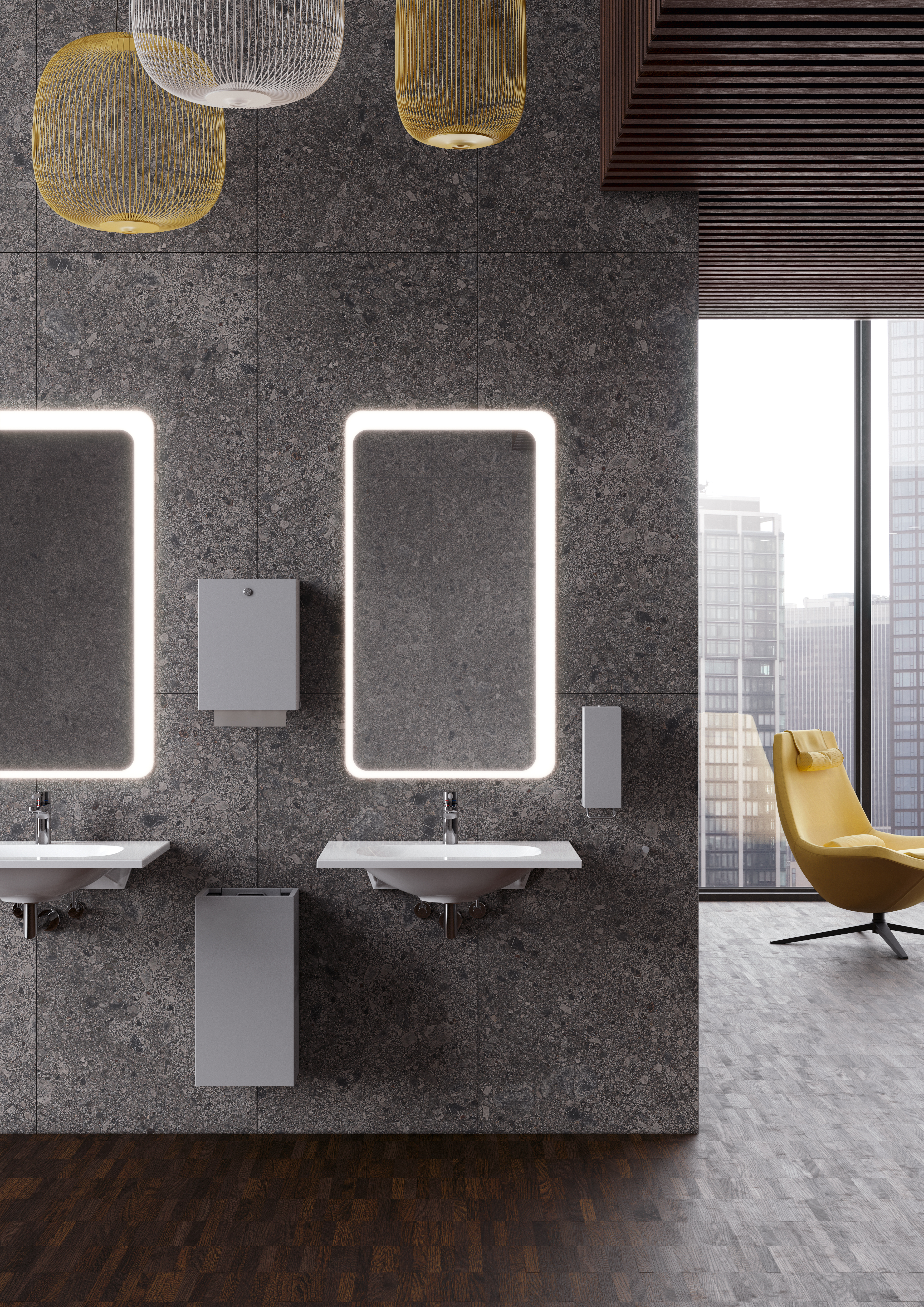 HEWI dispenser systems meet the highest demands in terms of design and functionality. Both manually operated variants and a selection of electronically controlled, touch-free dispensers are available. The wide range of materials for the dispenser systems offers design options.