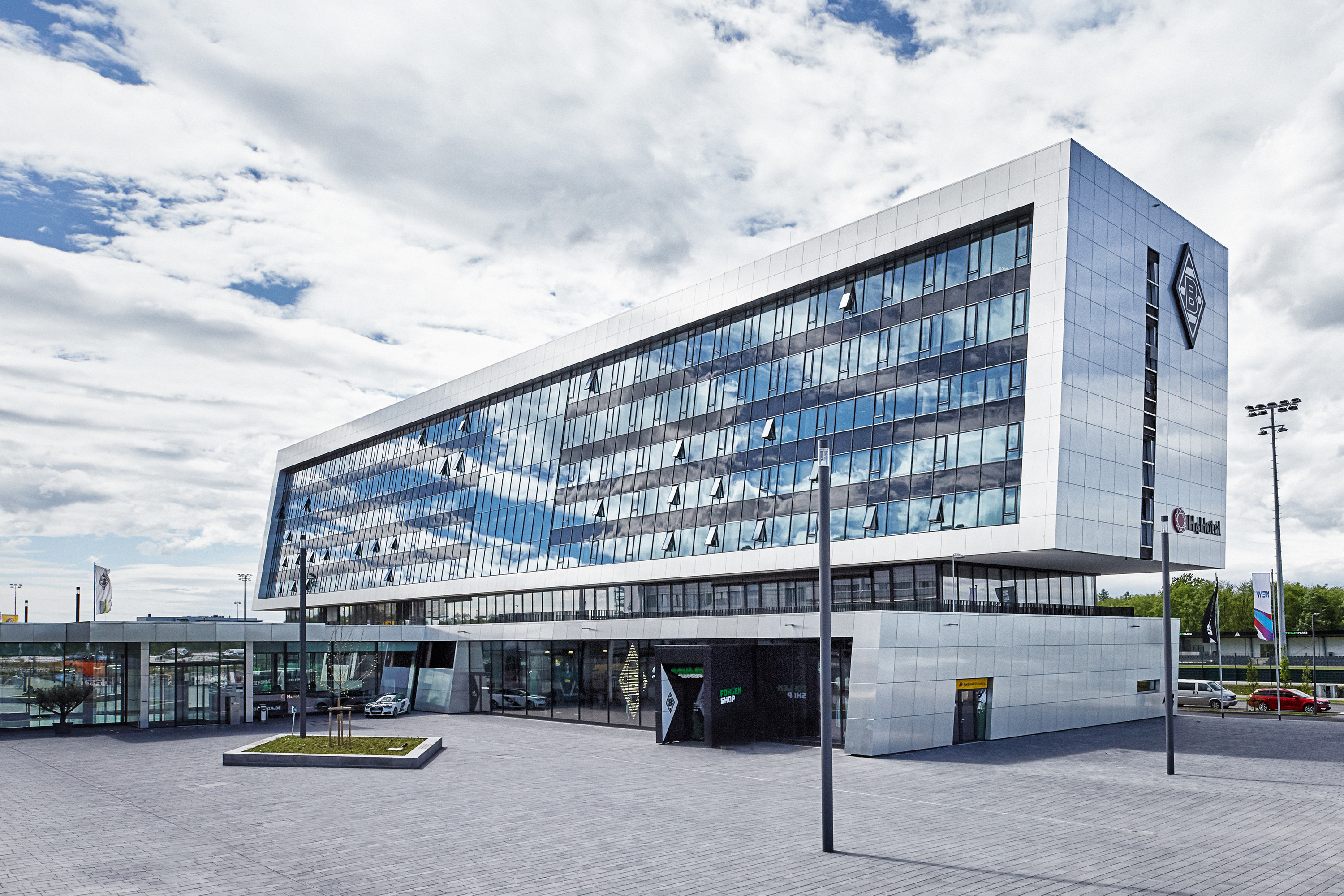 Even the design of the building is closely based on the Borussia Mönchengladbach club. The club crest - the Borussia rhombus - is the design principle.