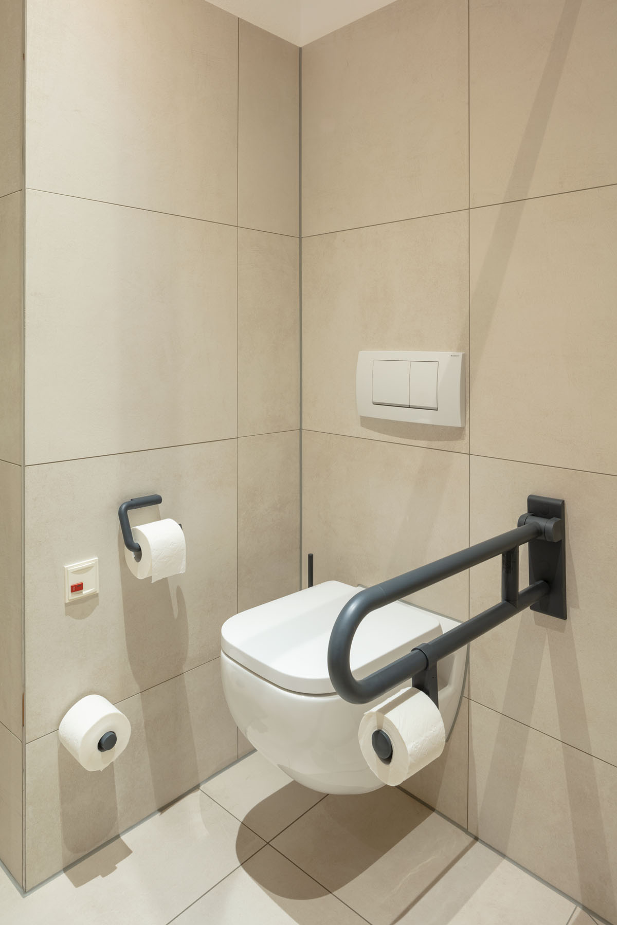 The HEWI washbasins with integrated accessibility are particularly useful. The shallow washbasin can be moved underneath and practical grab rails provide reliable support. These can also be used as towel rails.
