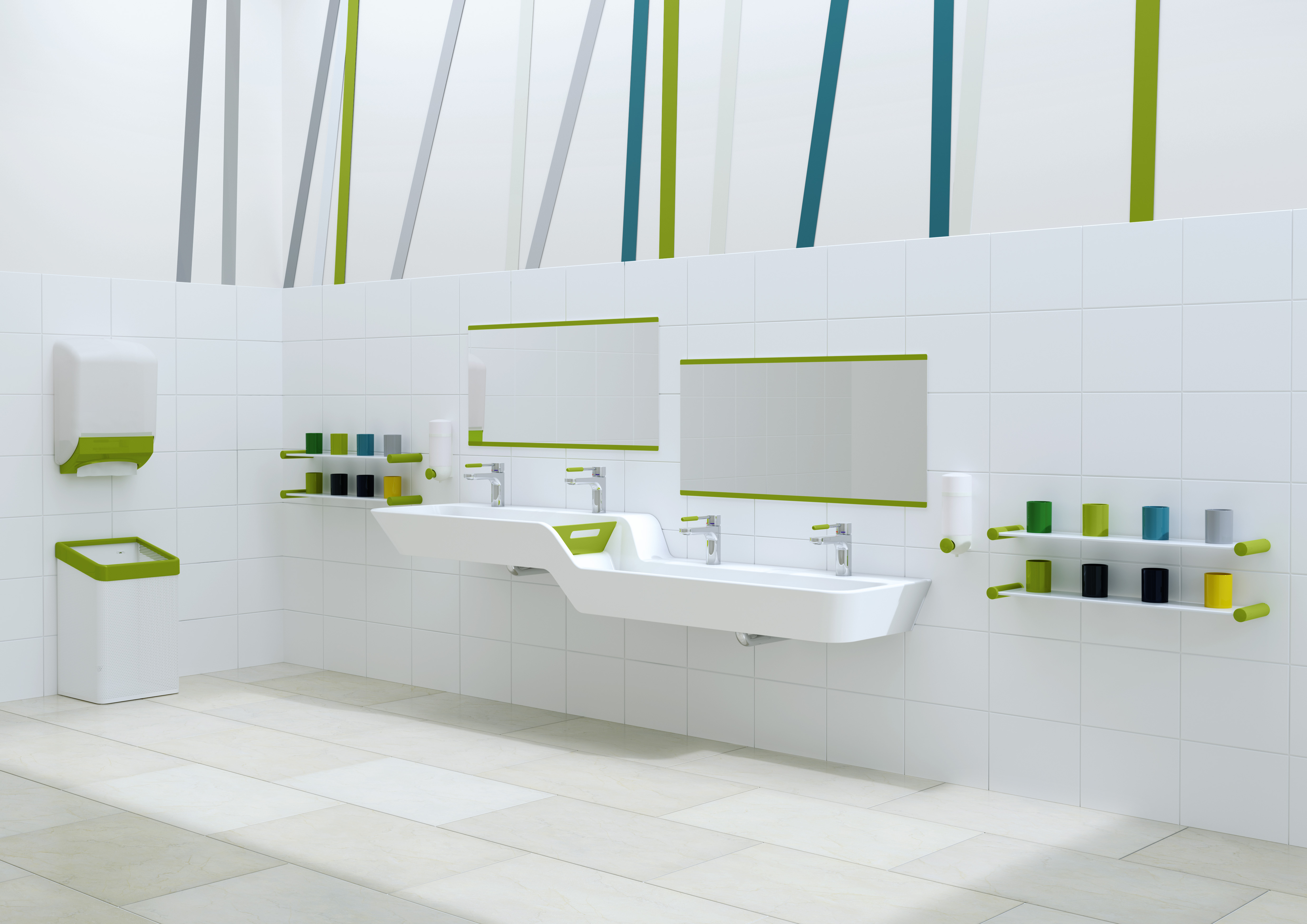 Washing hands and brushing teeth is much more fun when the bathroom design in kindergartens is adapted to the needs of the little users. HEWI offers a comprehensive range of sanitaryware with cheerful colours that invite children to wash and splash around.