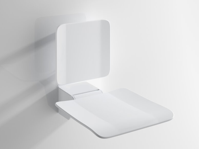 Permanently installed shower seats have a folding seat. If the shower seat is not required, more space in the shower can be created with a single movement.