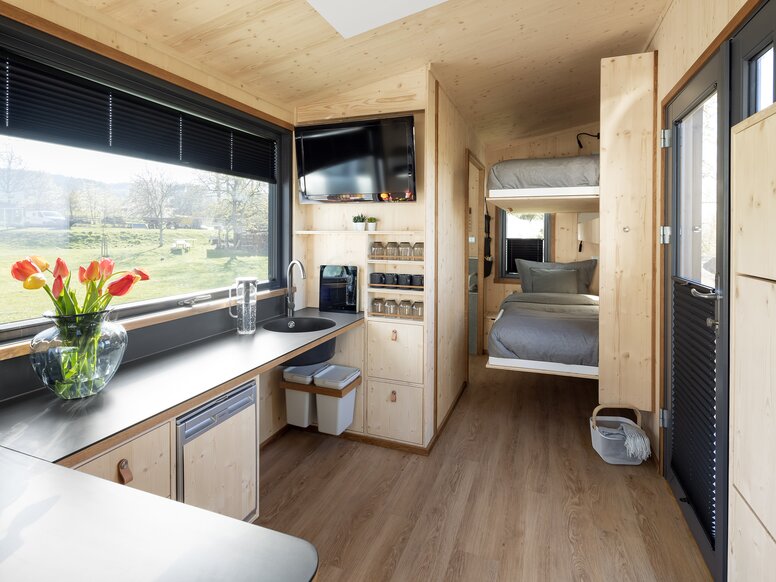 Christian Bock : Dans nos tiny houses, l'accent est clairement mis sur la qualité de vie. La nature des matériaux joue un rôle important pour nous. Pour nos mini-habitations, nous utilisons principalement des matériaux naturels et durables, comme le bois ou la laine de mouton. En outre, nous veillons à travailler de la manière la plus durable et la plus écologique possible. Certaines de nos tiny houses sont également mobiles et transportables dans une mesure limitée. Mais elles ne sont pas comparables aux camping-cars. Dans une tiny house, le climat d'habitation est différent. Néanmoins, on ne dispose que d'une surface limitée qu'il faut utiliser au mieux.