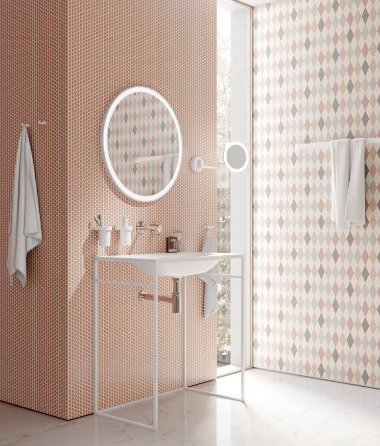 Des garnitures dans la couleur souhaitée assorties aux solutions sanitaires thermolaquées dans la couleur de votre choix sont également disponibles. Avec les poignées de porte du système 270 combinées au système 900, vous créez des concepts d’aménagement uniques, de la porte à la salle de bain.