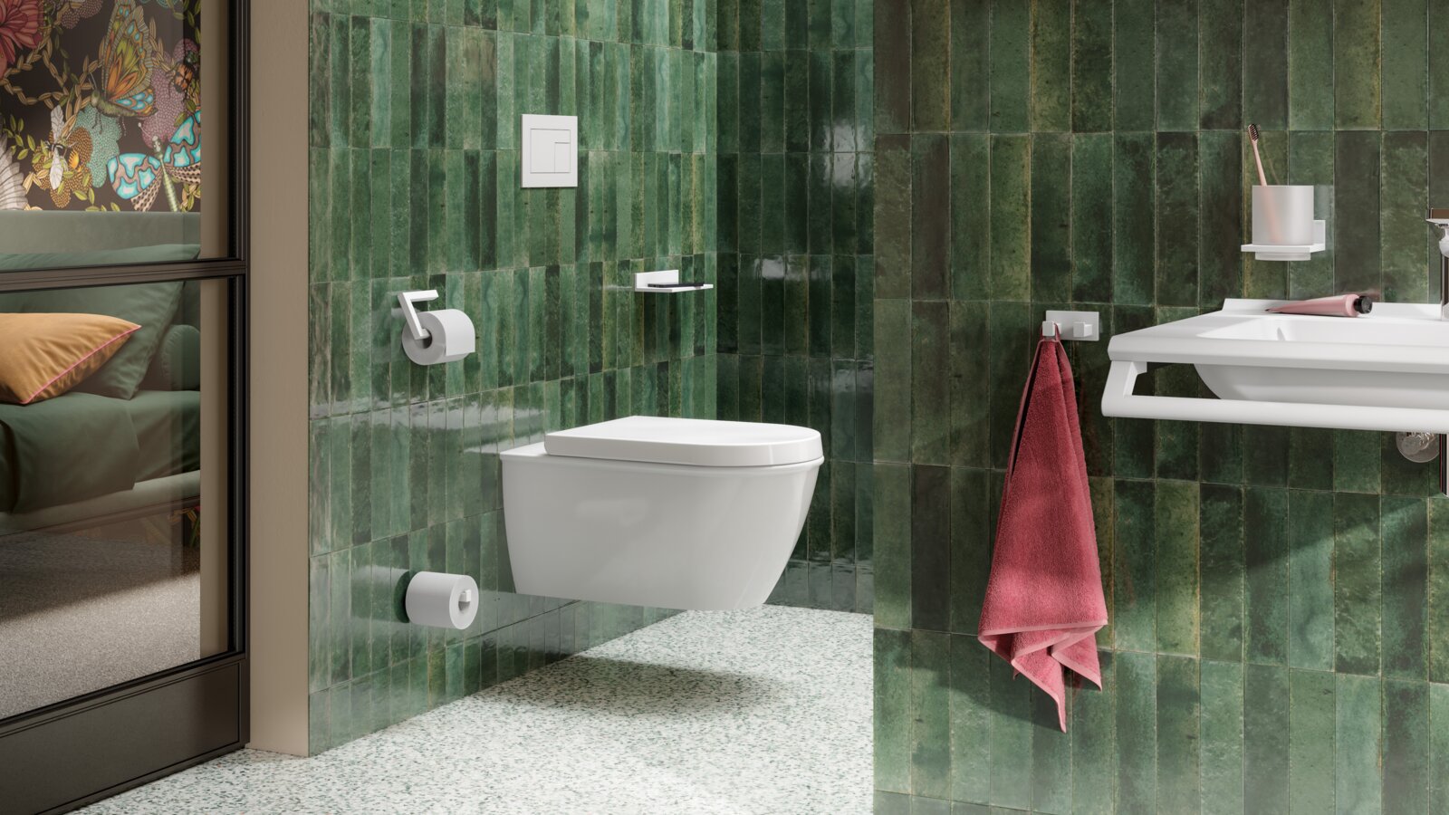 Le système 800 HEWI, qui est maintenant disponible dans de nouveaux coloris, apporte une touche de fraîcheur au design des salles de bain d’hôtel. Les accessoires de la série ont été complétés par une surface au toucher agréable thermolaquée en noir mat et blanc mat. Ces produits complètent la surface chromée déjà existante. Les possibilités de conception du système 800 sont donc presque infinies. Les accessoires en noir mat et blanc mat apportent une touche de fraîcheur au niveau du lavabo, des toilettes, de la douche et de la baignoire. Les inserts en verre cristal satiné élégant ou en polyamide de haute qualité offrent d’autres options de conception intéressantes.